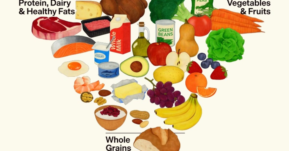 “The brand new tips acknowledge that entire, nutrient-dense meals is the best path to higher well being and decrease well being care prices,” Secretary Kennedy stated within the White Home press briefing. “The brand new framework facilities on protein and wholesome fat, greens, fruits and entire grains. It’s the wrong way up, lots of people say. It was really the wrong way up earlier than.”